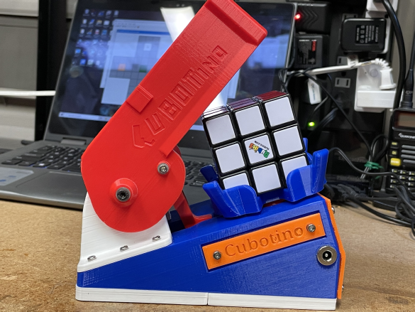 A 3D printed robot that solves a scrambled Rubik’s cube.