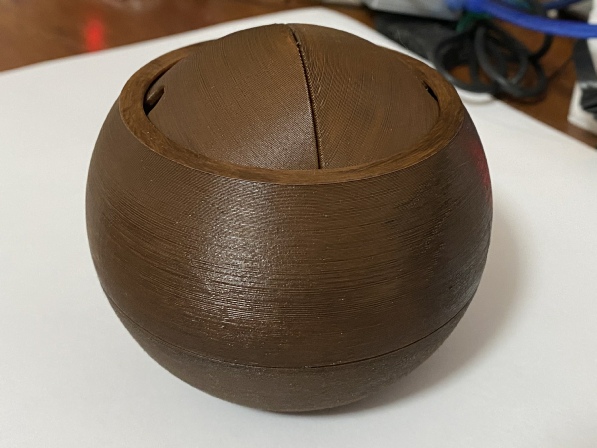 A “Venus” ball. Twist the upper and lower hemispheres of the ball to reveal its contents.